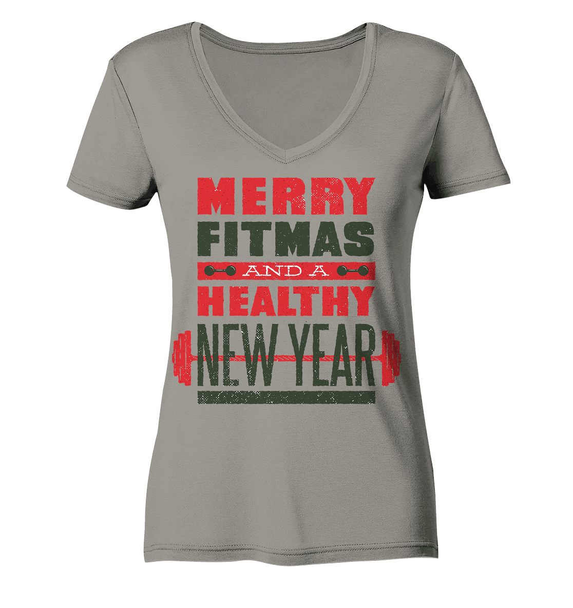 Weihnachtliches Design, Gym, Merry Fitmas and a Healthy New Year - Ladies V-Neck Shirt