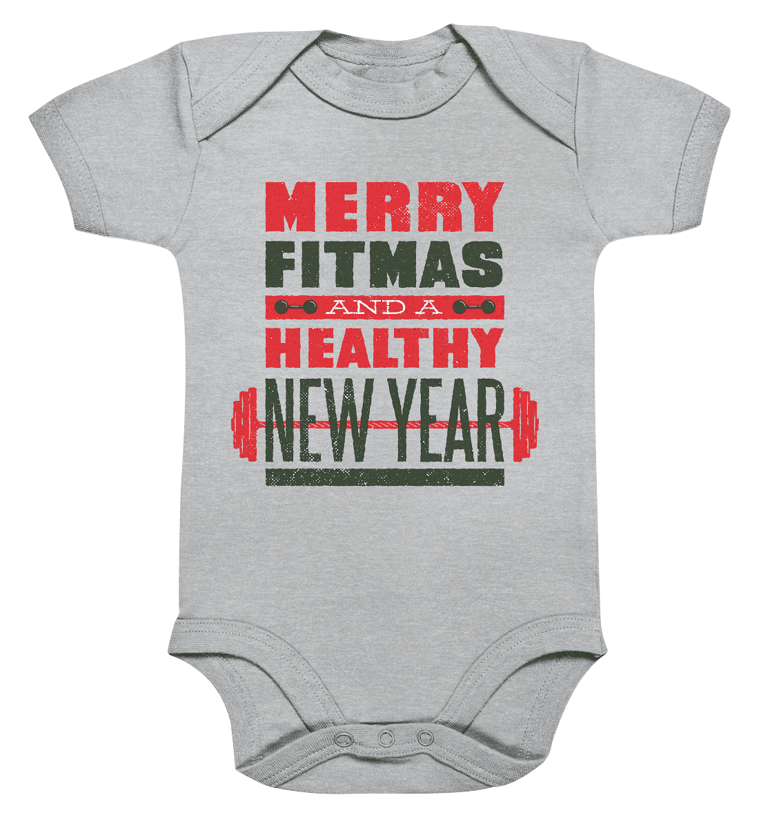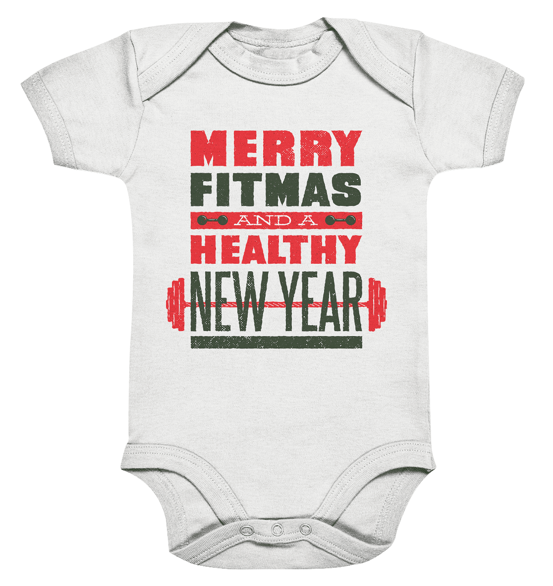 Weihnachtliches Design, Gym, Merry Fitmas and a Healthy New Year - Organic Baby Bodysuite
